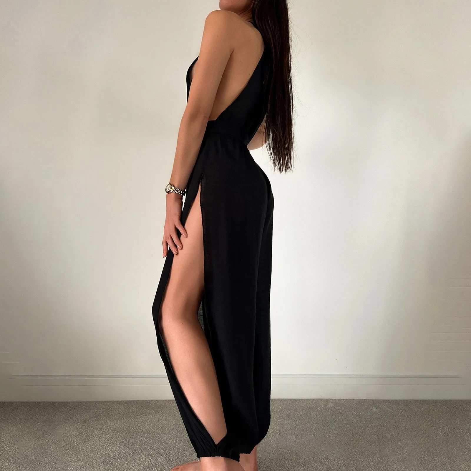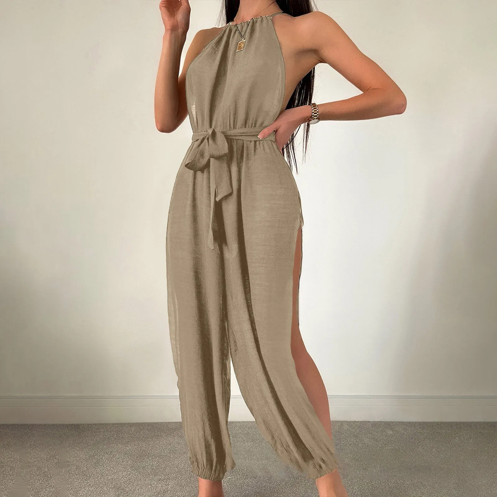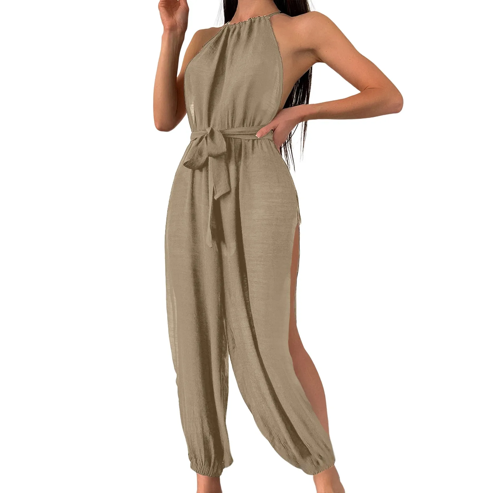 Women's Sleeveless Beach Coverup Solid Color Versatile Strap Fashion Slim Fit Jumpsuit