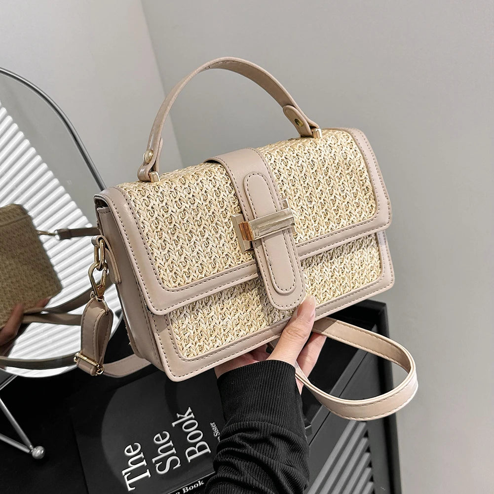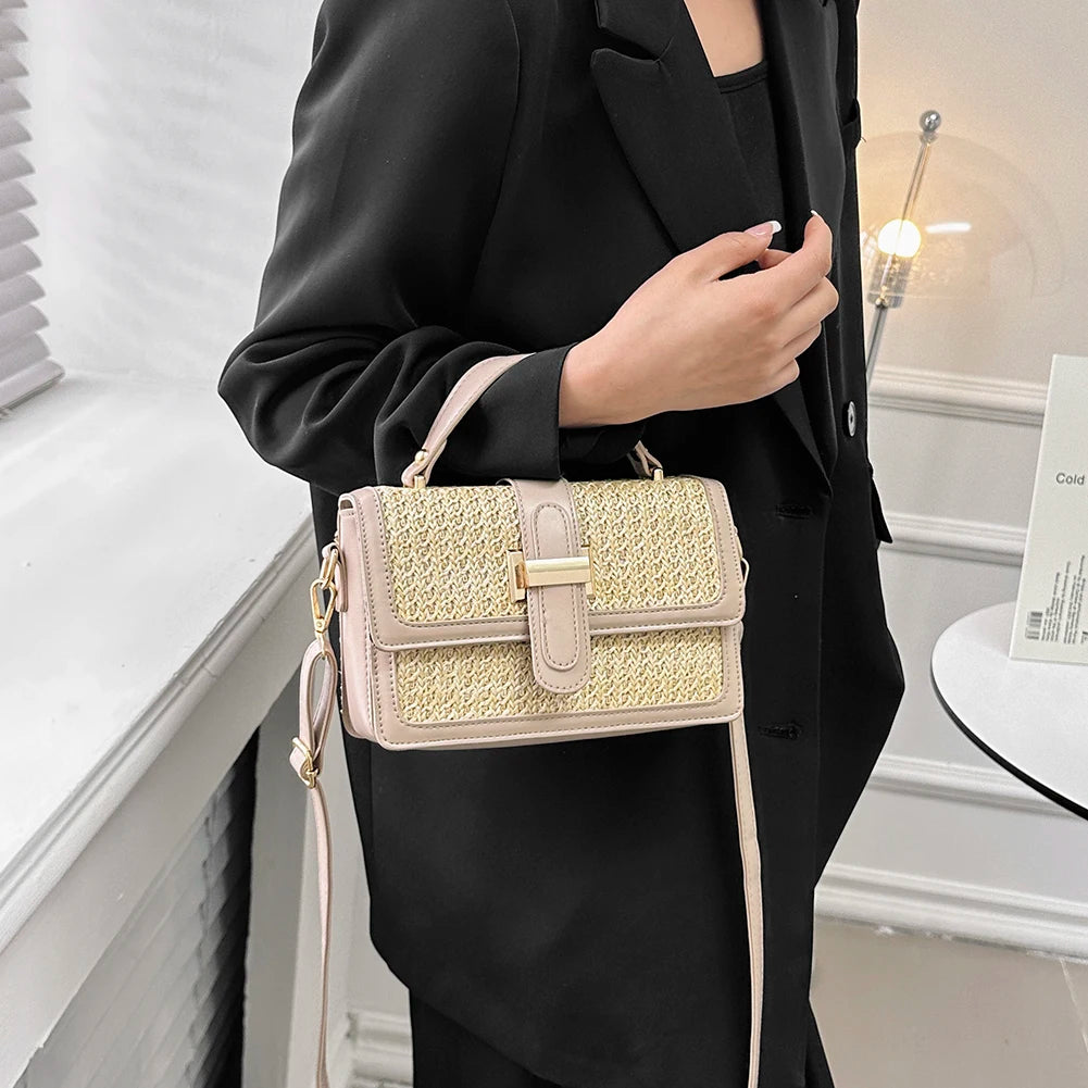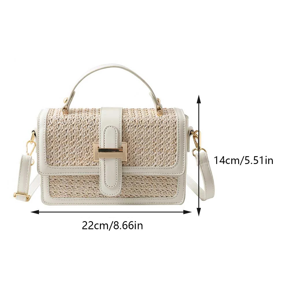 PU Leather Straw Crossbody Bag Flap Summer Beach Purse with Adjustable Strap Holiday Travel Handbag Chic Satchel Purse for Women Feature: