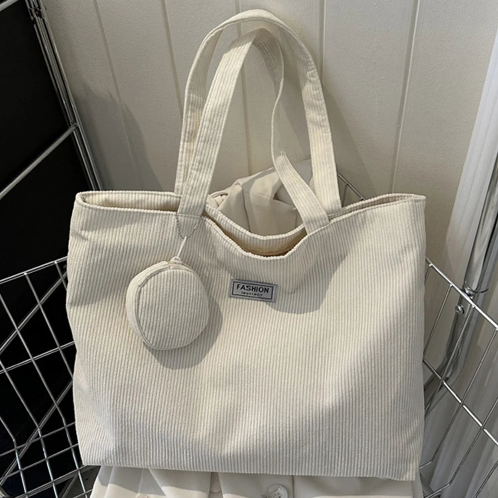 1. High-Quality Corduroy: This women's large capacity corduroy tote handbag is made of premium corduroy fabric, ensuring exceptional durability and a soft, washable texture. It becomes an essential everyday handbag that combines style with practicality.
