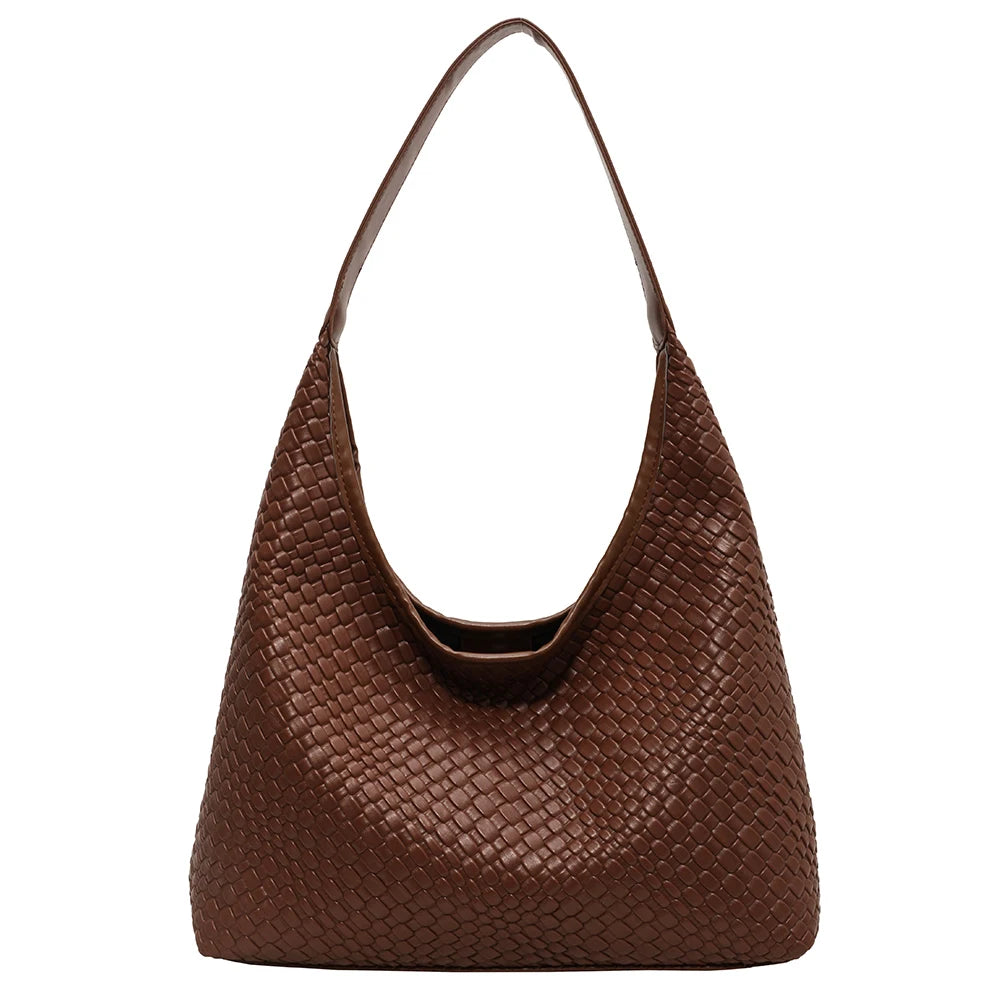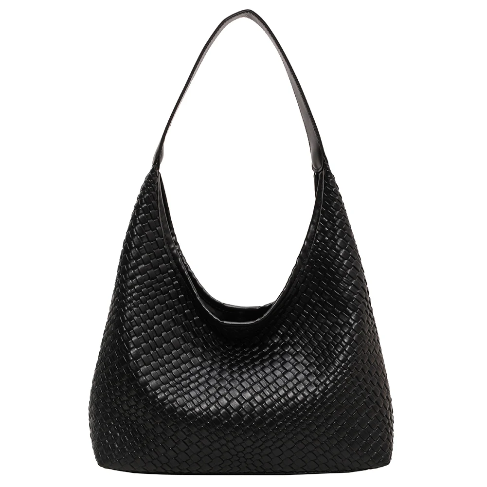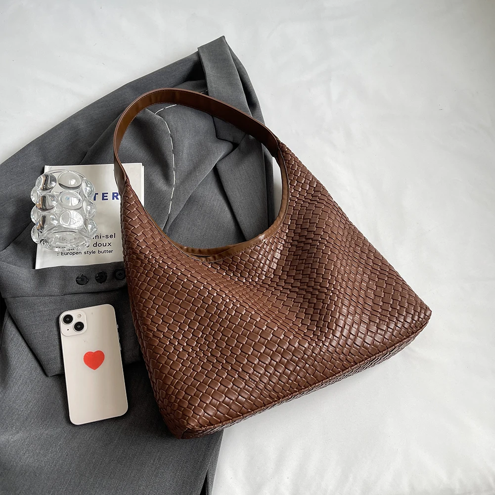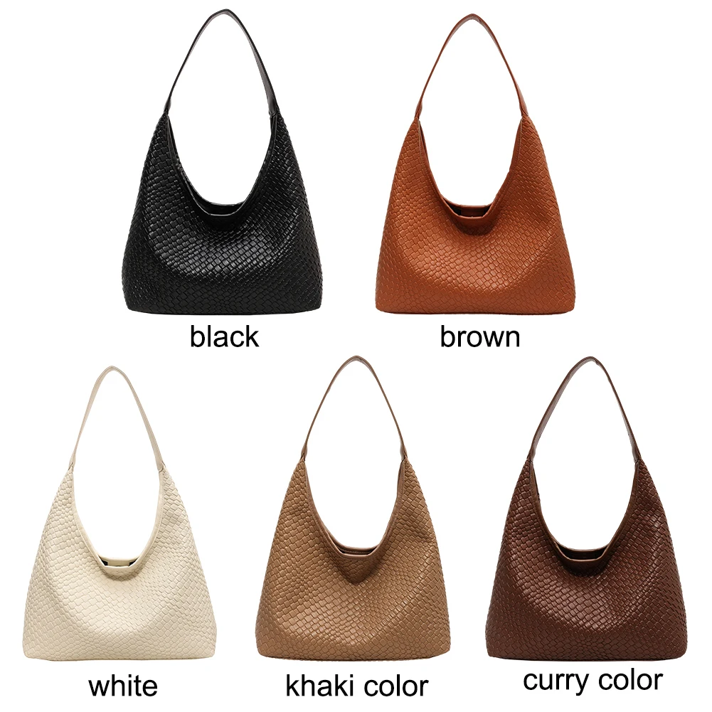 PU Leather Woven Tote Bag Women Large Shoulder Satchel Hobo Bag with Pouch Casual Top Handle Bag Armpit Handbag Shopping Bag